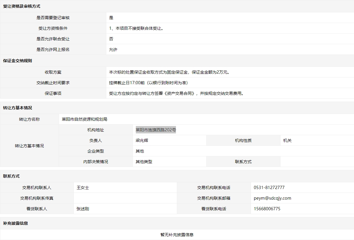 轉(zhuǎn)讓方:萊陽市自然資源和規(guī)劃局
