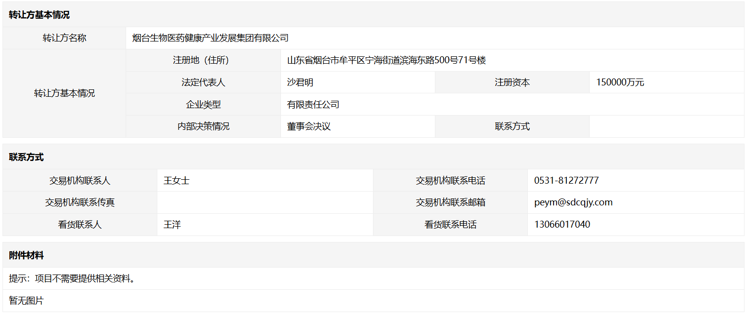• 轉(zhuǎn)讓方:煙臺(tái)生物醫(yī)藥健康產(chǎn)業(yè)發(fā)展集團(tuán)有限公司
