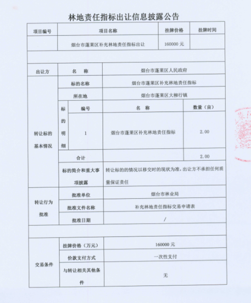 煙臺市蓬萊區(qū)林地責(zé)任指標(biāo)出讓